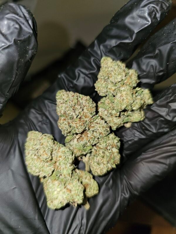 DoSi Lato is an elite cannabis strain born from crossing the legendary Do-Si-Dos and Gelato #41, blending the best of both worlds into a potent and flavorful hybrid. This small-batch exotic displays dense buds covered in glistening trichomes, with rich green and purple colors contrasted by bright orange pistils, making it visually stunning.